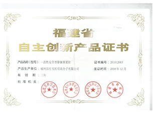 福建省自主創(chuàng)新產(chǎn)品證書